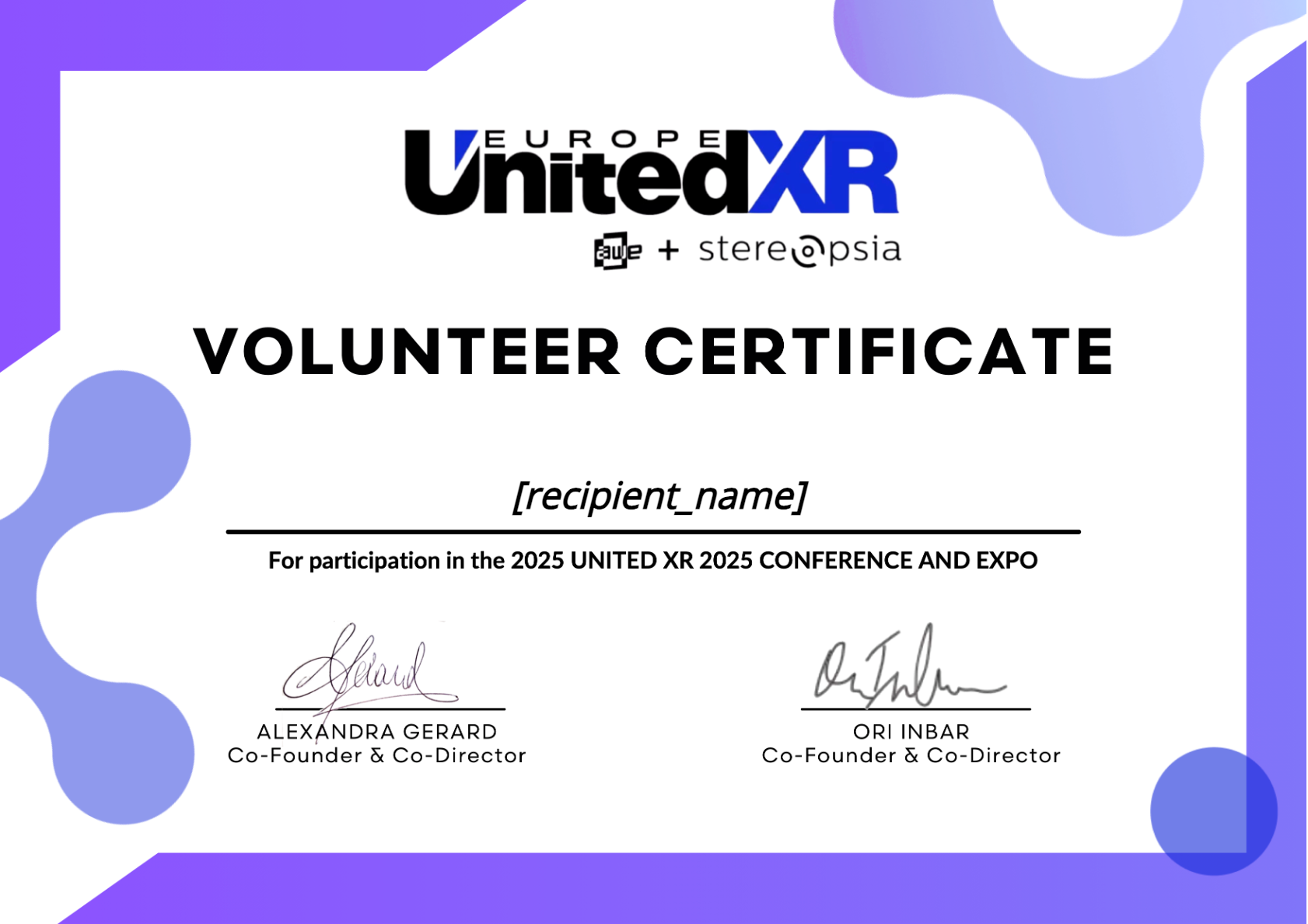 For volunteer participation in the UnitedXR 2025 Conference and Expo