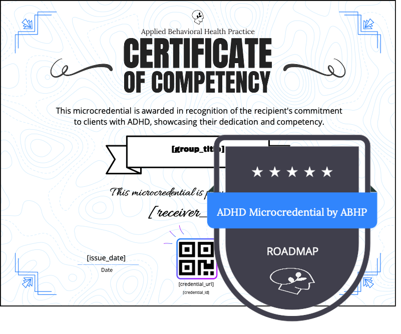 Executive Function Roadmap Microcredential for Behavior AnalystsThis microcredential recognizes behavior analysts who demonstrate competency in ADHD-informed assessment and intervention related to executive function.Recipients have shown proficiency in:☑️ Using the Executive Function Roadmap for ADHD™, a structured framework for identifying executive function strengths and challenges☑️ Devel…