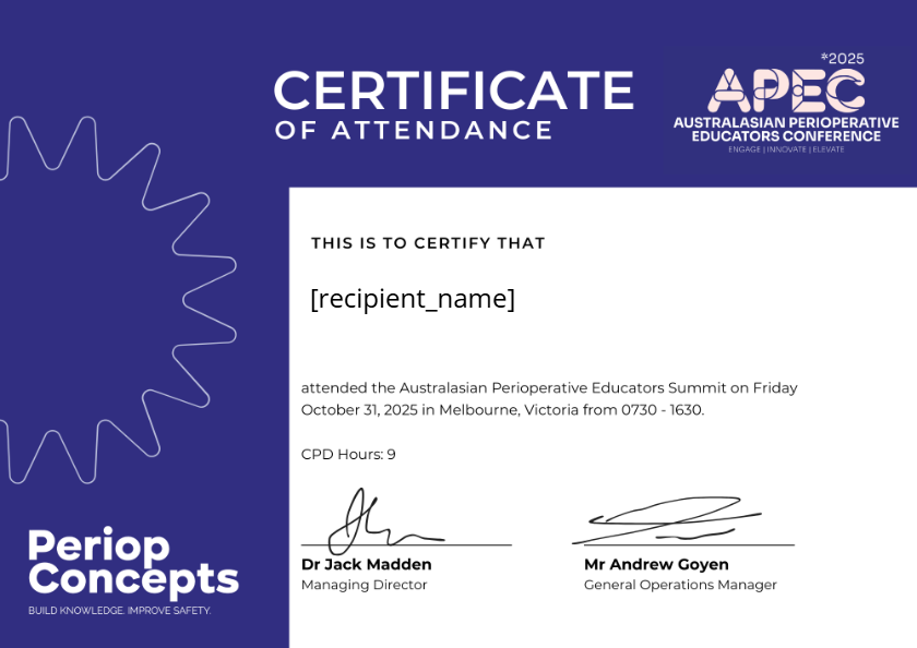 Concept Creators are our experts who help create and deliver content/sessions that inspire, engage, and elevate perioperative education. They bring fresh insights, practical expertise, and innovative ideas - sparking curiosity, building confidence, and empowering perioperative learners to deliver safer care